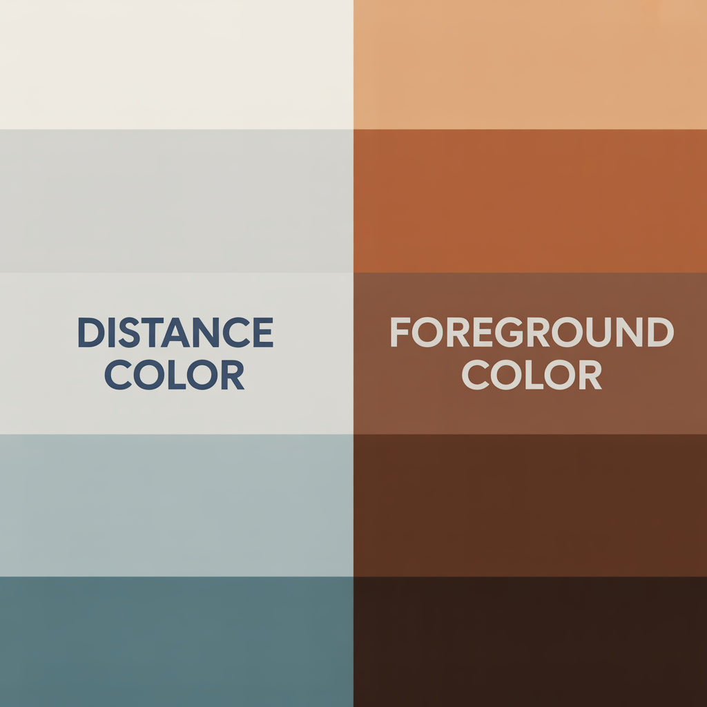 Basic rule: distance equals lighter, cooler, less contrast. Close up equals darker, warmer, more contrast.