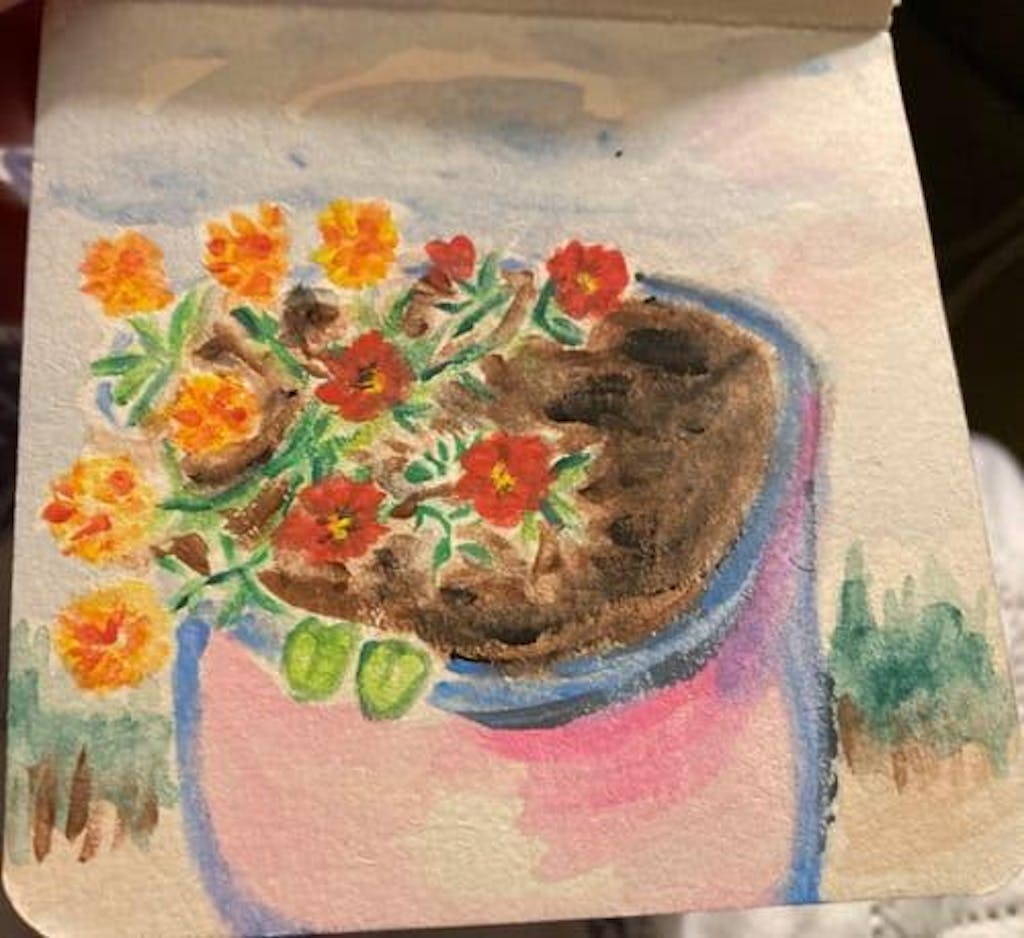 Just starting but love it! Will eventually get another pen brush! All quality paints & paper. No one knew I could paint🥰