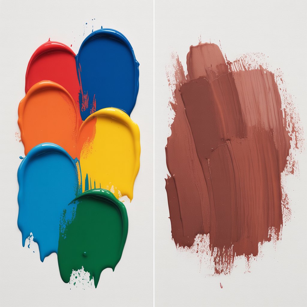 Here’s the golden rule: two colors stay bright, three colors are still workable, but four or more? That’s mud. Each extra pigment dulls your mix. You’re basically mixing in hidden complements, and they cancel each other out.