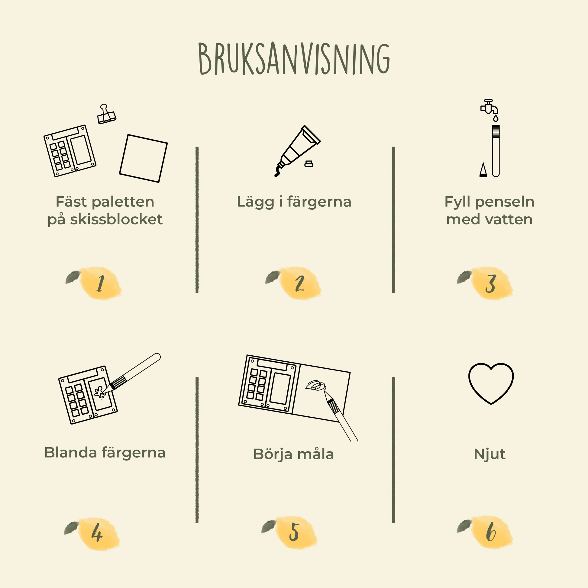 Setet är väl genomtänkt. Det finns tillräckligt med färger, vattenpenslarna är väldigt bekväma. Det rekommenderas att beställa extra penslar i olika storlekar direkt. Även väskan. Den får plats i en handväska eller liten ryggsäck. Mini-paletten kan enkelt klämmas fast på miniboken gjord av stadigt akvarellpapper medan man målar. Det är roligt att gradvis göra om den till en bildbok. Efter att jag målat omslaget fixade jag det med matt lack för att skydda mot nötning under transport i väskan. Jag hade inte trott att jag skulle tycka om att måla på dessa små ytor så mycket.