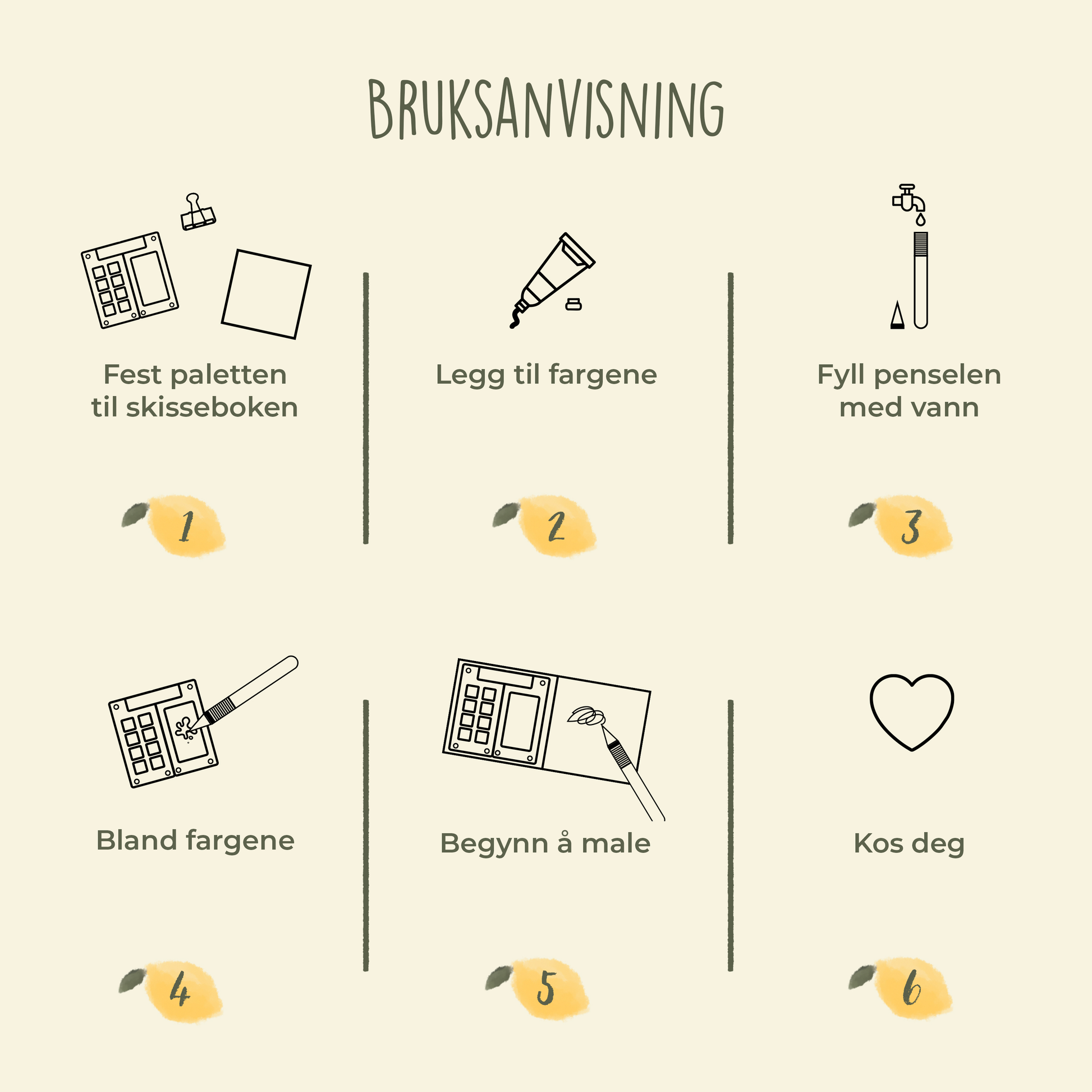 Settet er godt gjennomtenkt. Det er nok farger, vannpenslene er veldig behagelige. Anbefaler å bestille ekstra pensler i ulike størrelser med en gang. Også vesken. Den passer i en håndveske eller liten ryggsekk. Minipaletten kan enkelt festes til miniboken med solid akvarellpapir under maling. Det er gøy å gradvis gjøre det til en bildebok. Etter at jeg malte omslaget, lakkerte jeg det med matt lakk for å beskytte det i vesken. Trodde ikke jeg skulle like å male på så små flater så mye!