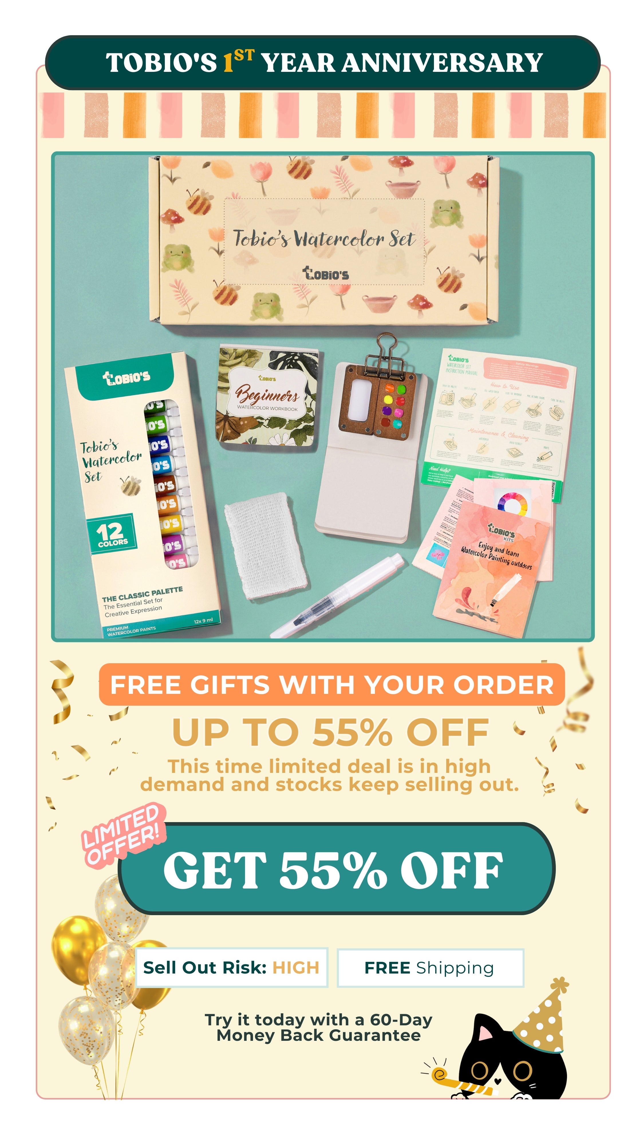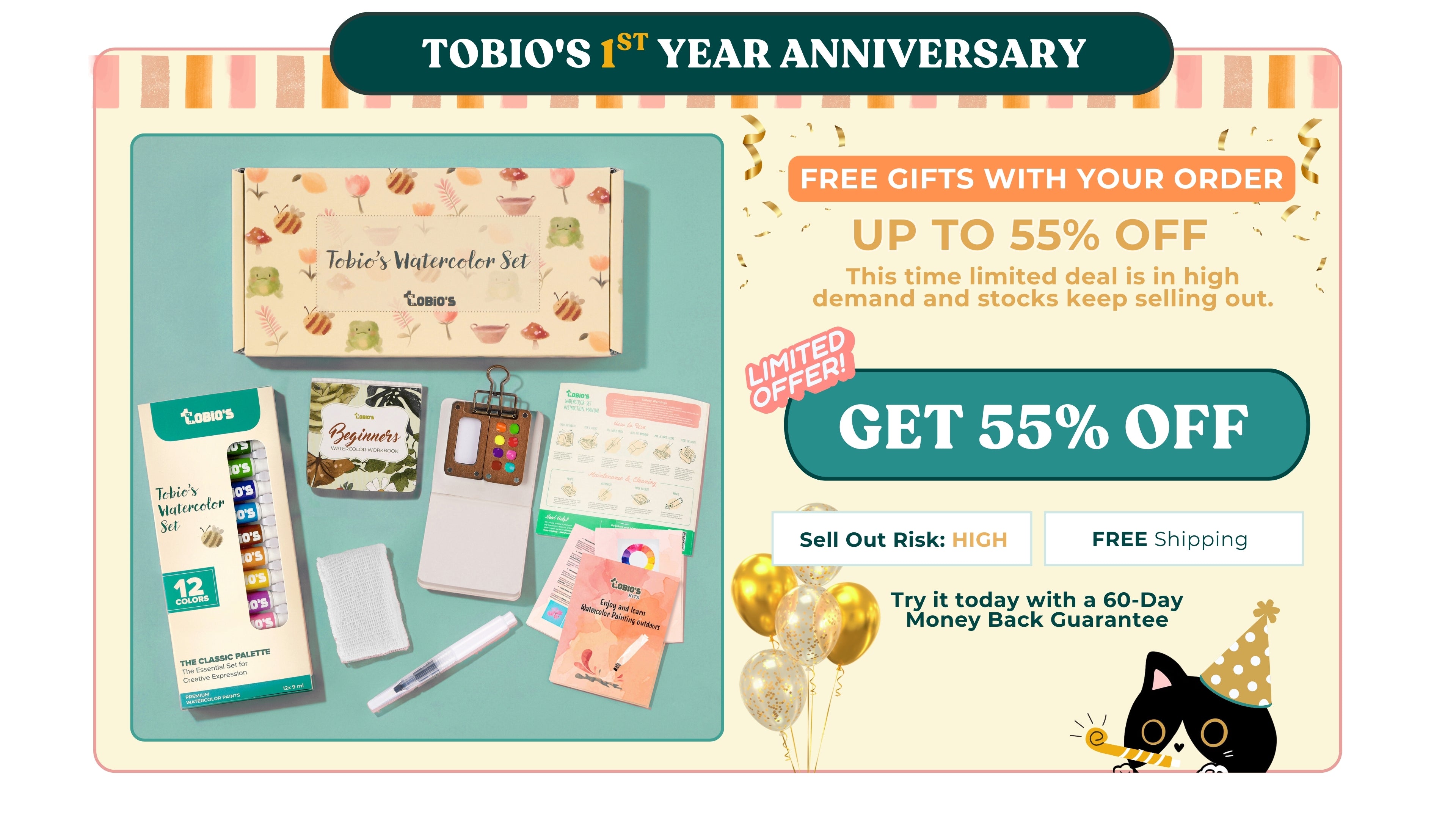 Tobio’s는 60일 환불 보장이 포함되어 있습니다. 맞지 않으시면 알려주세요, 전액 환불해 드리겠습니다. 이것이 우리의 “행복한 화가의 약속”입니다.
