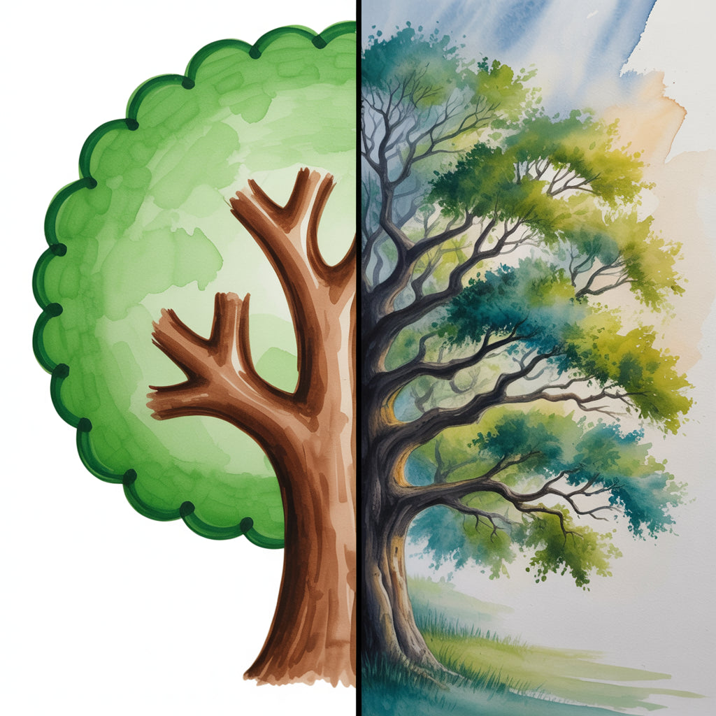 Why do my watercolor trees look flat?