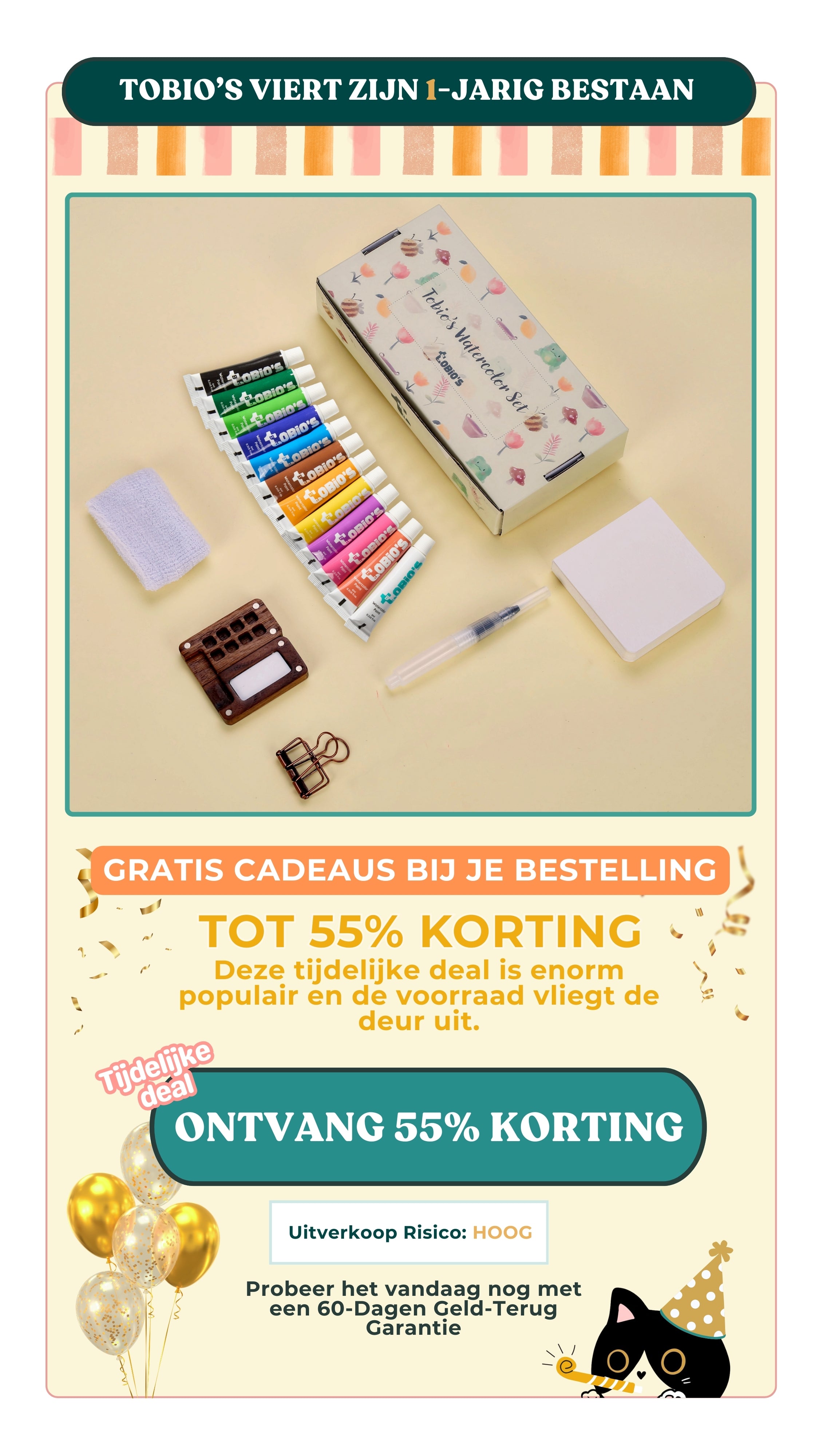 UPDATE! Tobio’s Aquarelset is onverwacht viraal gegaan op social media. We hadden dit nooit zien aankomen en de voorraad slinkt sneller dan gedacht. Daarom zijn we nu bijna uitverkocht.Klik hieronder om jouw set te claimen!