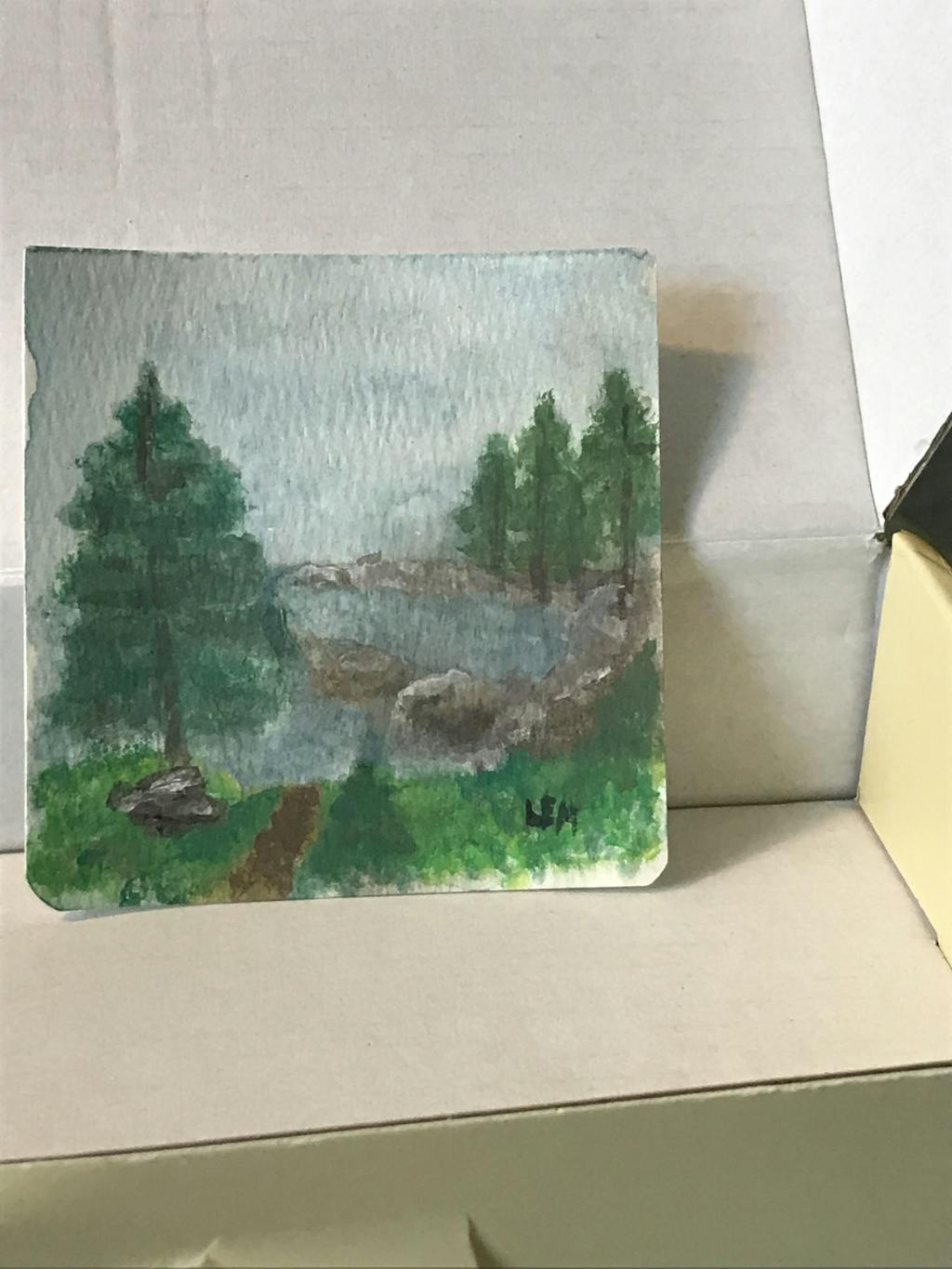 Close the case when done. The paints dry alone. The brush tucks in. Your painting can stay or tear out clean.