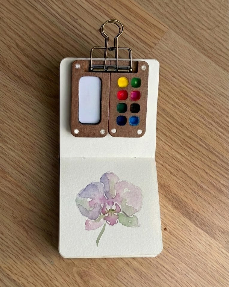 I denna 15-minuters skissboksstudie tar vi oss an en orkidé-akvarell i en lös, expressiv stil. Vi låter vattnet göra det tunga jobbet och skapar mjuka, drömlika gradienter som ser komplexa ut men faktiskt är otroligt enkla att utföra.